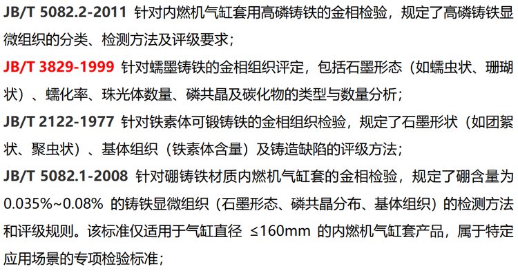 硼铸铁材质内燃机气缸套的金相检验JB/T 5082.1-2008