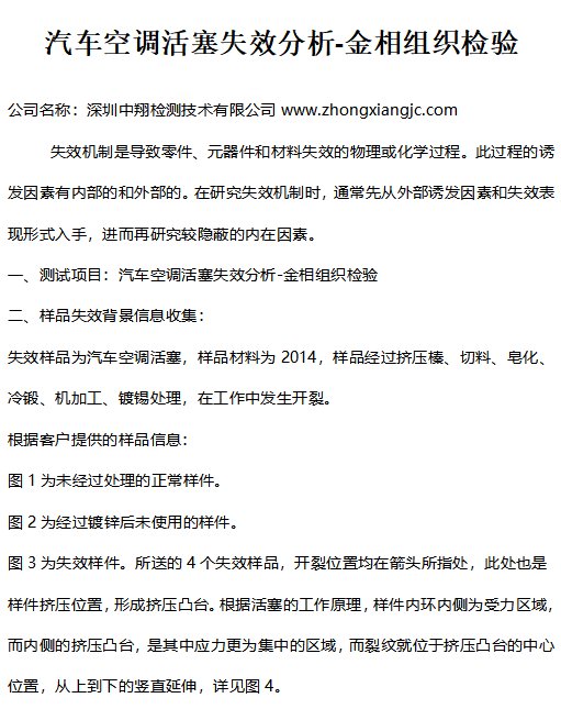 汽车空调活塞失效分析 金相组织检验 断口宏观与微观检查